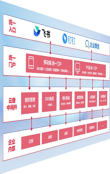 对协作平台提供支持服务,,,支持企业应用与协作平台对接,,,包含组织同步、、消息集成、、、待办集成等。。。。支持目前主流的协作平台:钉钉、、企微和飞书。。。